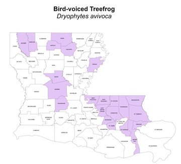 Subspecies: Only the Western Bird-voiced Treefrog, Hyla avivoca avivoca, occurs within Louisiana.