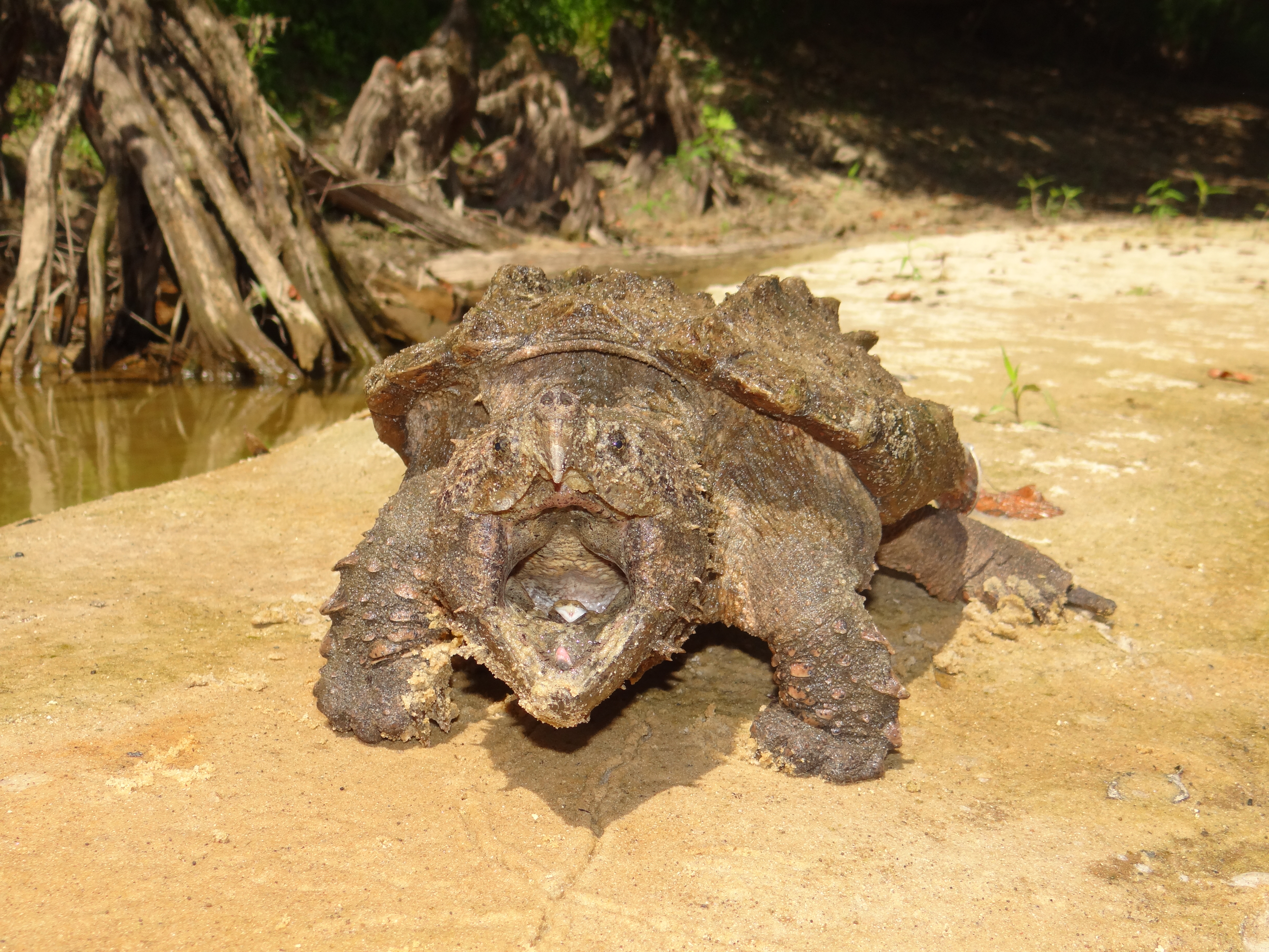 Louisiana Conservation Status: Alligator Snapping Turtles have a ranking of S2 (imperiled because of rarity – 6-20 known extant populations) in Louisiana. Alligator Snapping Turtles are a restricted species in Louisiana, where, with a proper license, they may be taken, but take and possession is limited to one per person per day with a possession limit of one. No more than 10 restricted turtles (maximum of two per species, except Alligator Snapping Turtle which is one) are allowed in possession. can take no more than one Alligator Snapping Turtle per day, per person, per vehicle/vessel.