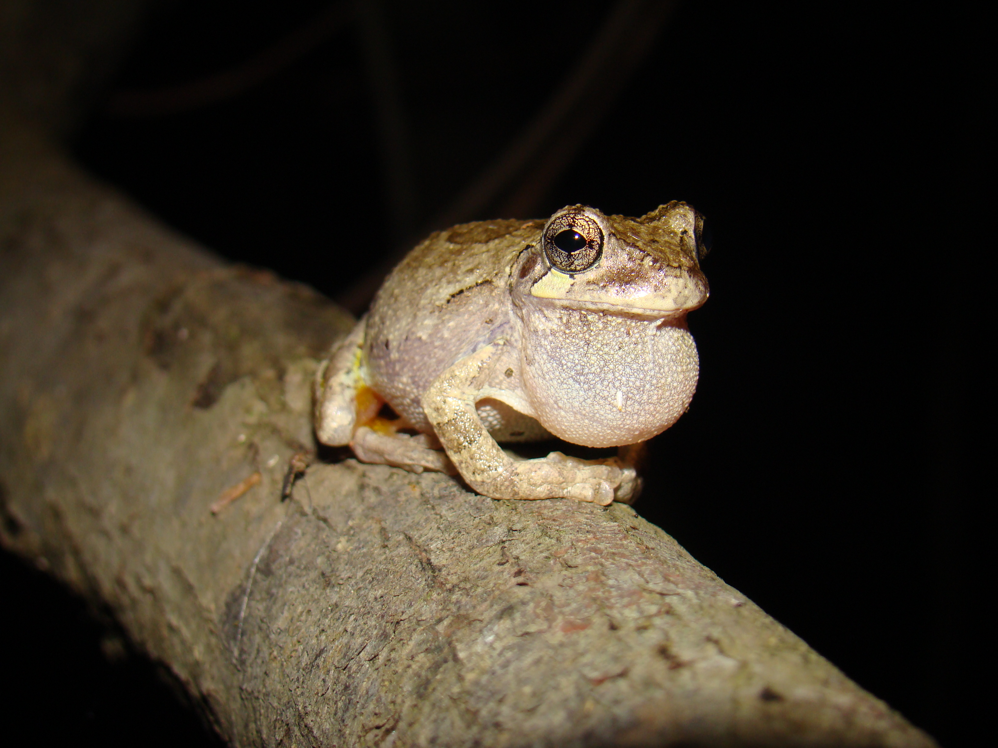 Call: A melodious trill, slower and lower-pitched than Cope’s Gray Treefrog, that lasts ˝–1 second and is repeated every few seconds.