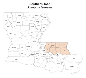 Louisiana Conservation Status: Southern Toads have a ranking of S3 (rare and local throughout the state – 21-100 known extant populations) in Louisiana.