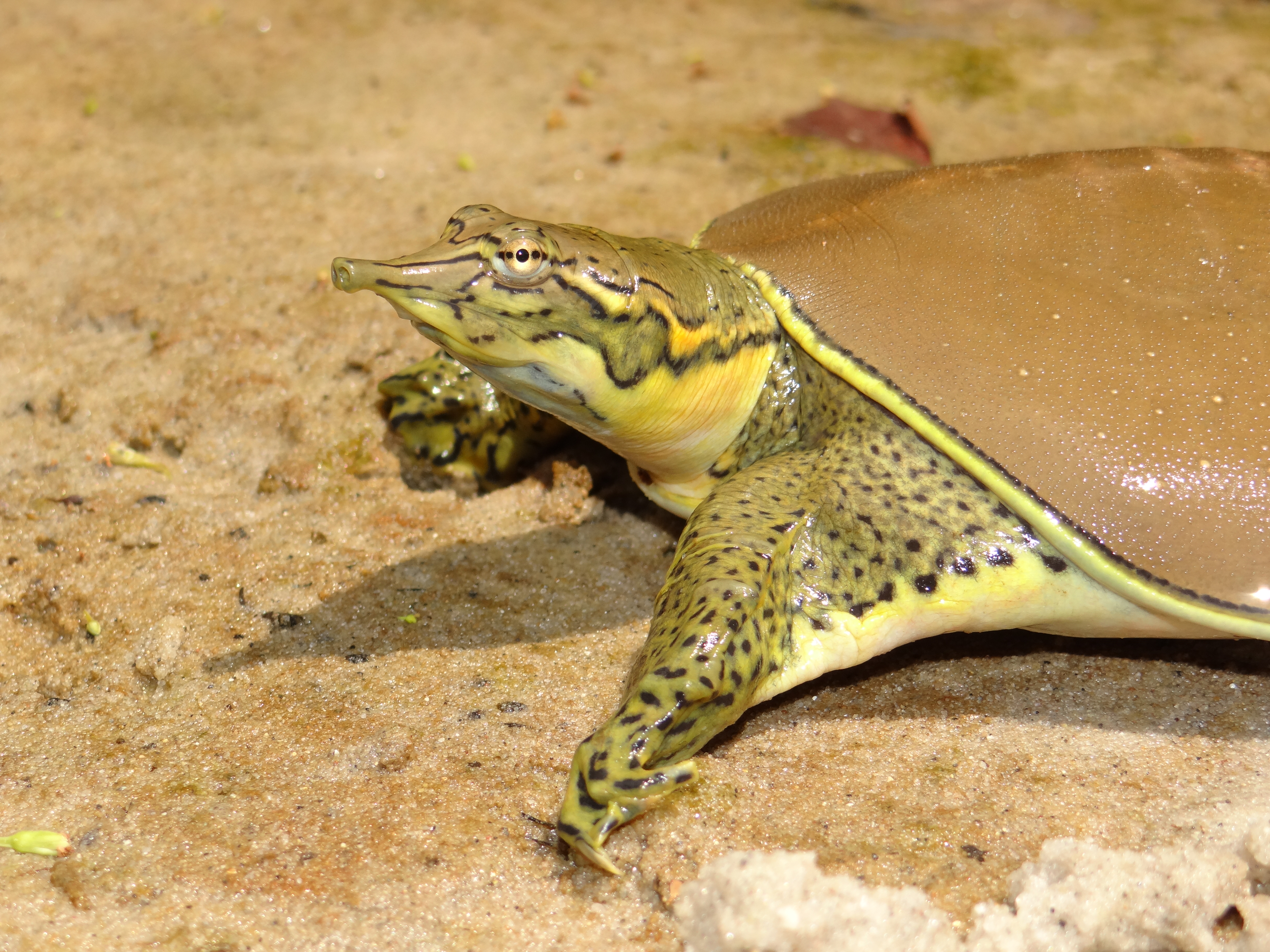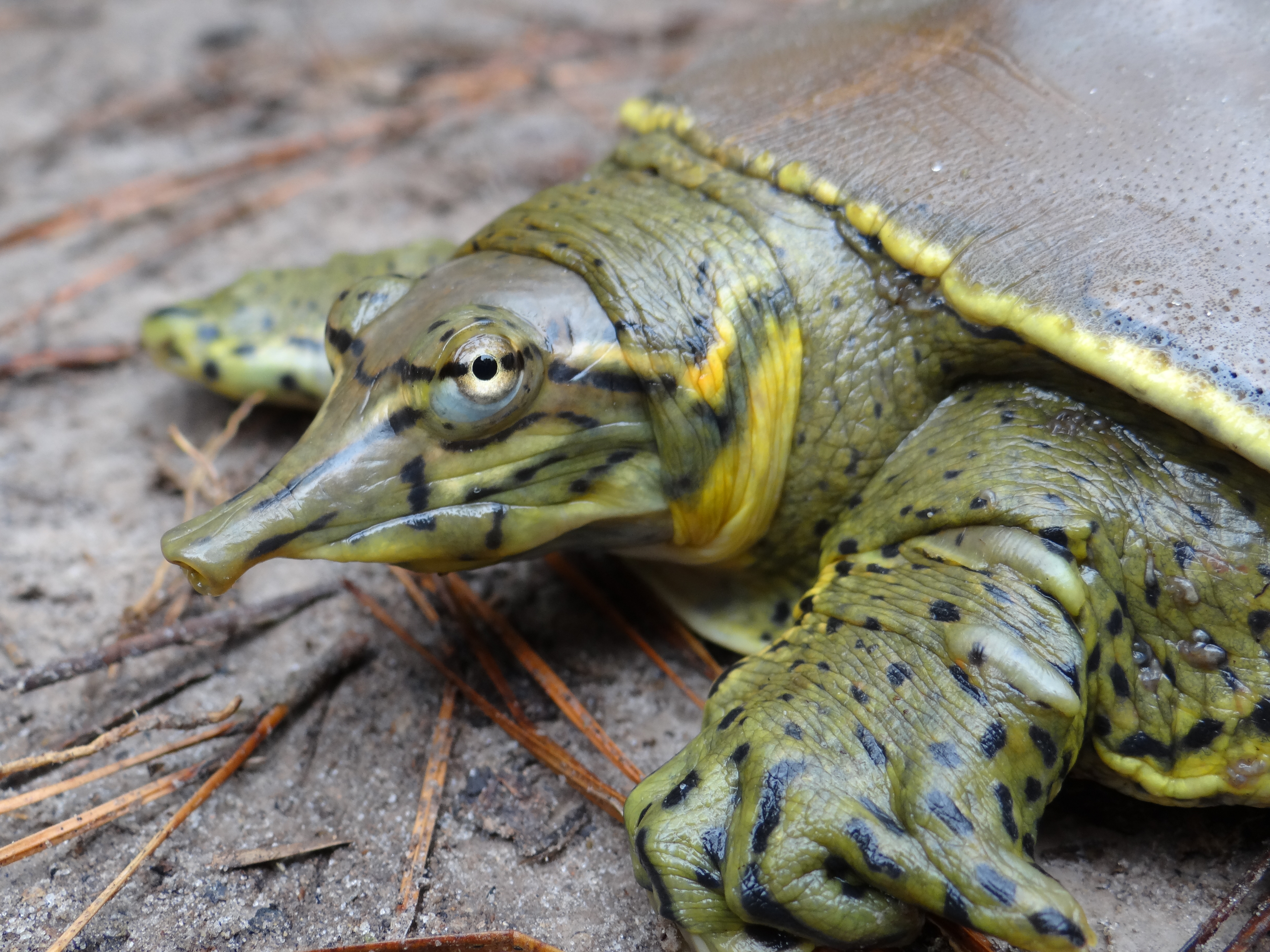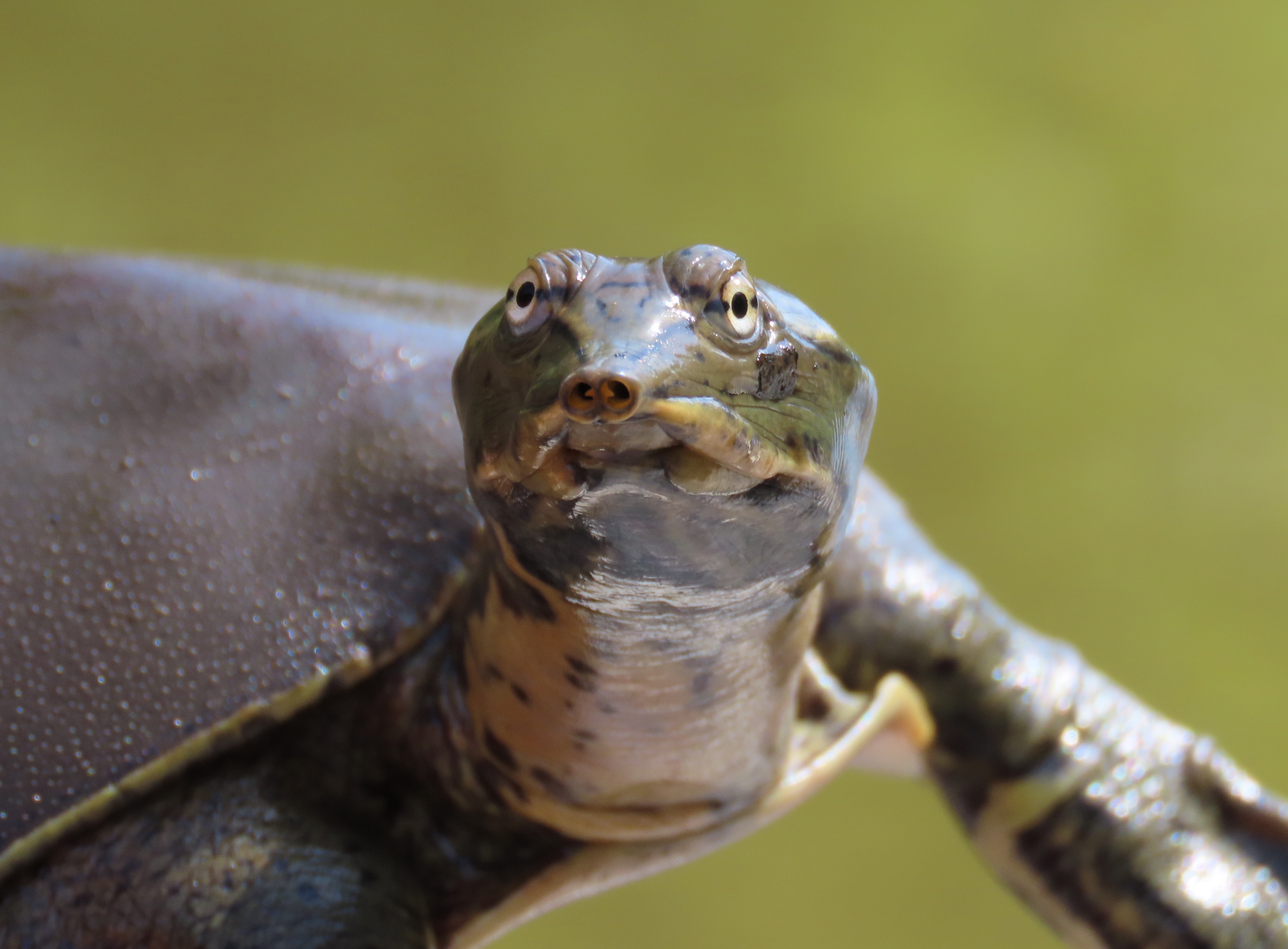 Louisiana Conservation Status: Spiny Softshells are a restricted species in Louisiana, where, with a proper license, they may be taken, but take and possession is limited to two Spiny Softshells, and no more than 10 restricted turtles (maximum of two per species, except Western Alligator Snapping Turtles which is one) are allowed in possession.