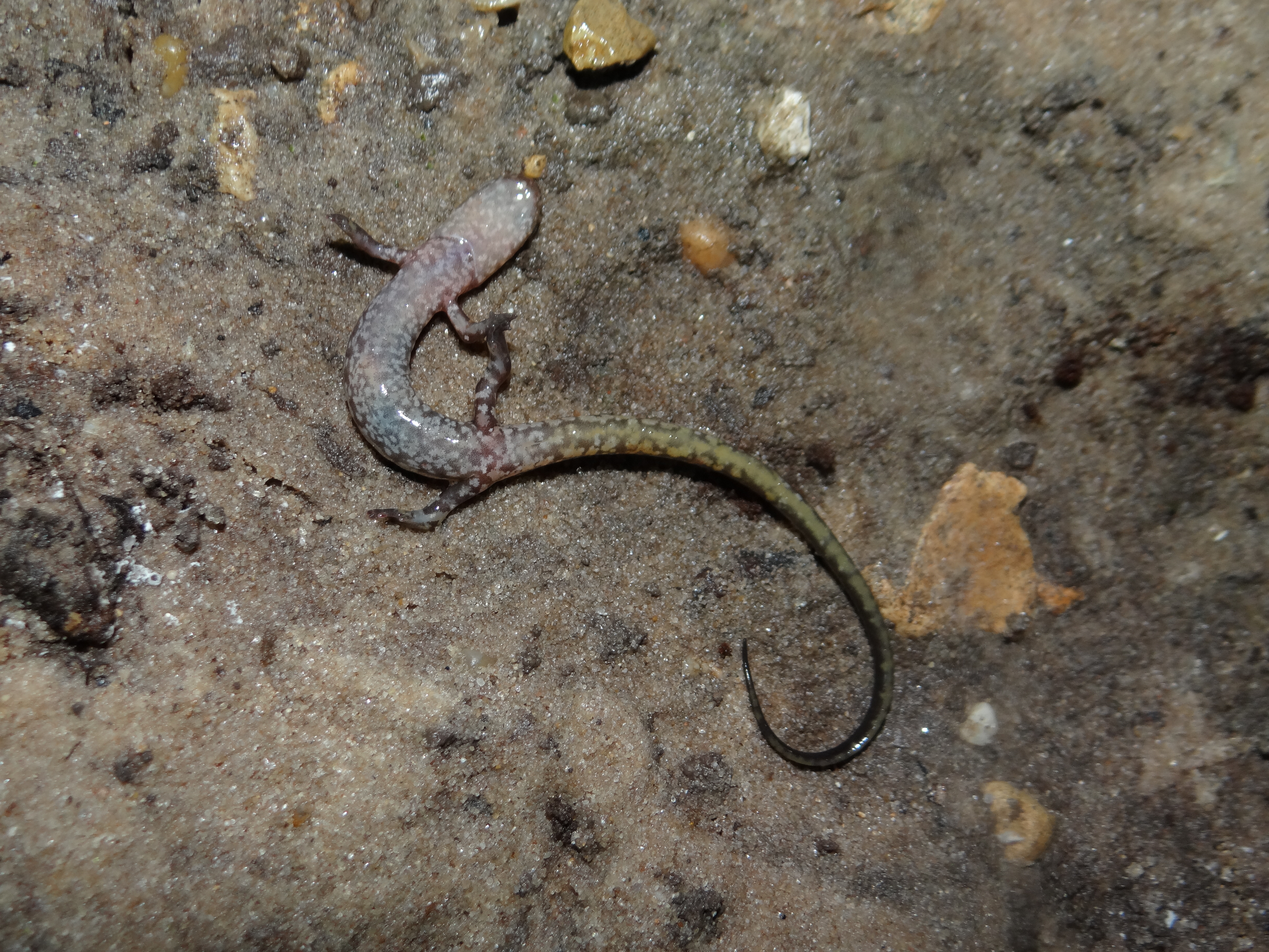 Best Time and Place to Observe: Three-lined Salamanders can be found year-round by uncovering objects, like rocks or logs in appropriate habitat. They are also often found within and under piles of woody debris and leaves left by receding water.