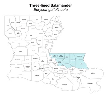 Louisiana Conservation Status: Three-lined Salamanders have a ranking of S3 (rare and local throughout the state – 21-100 known extant populations) in Louisiana.