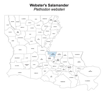 Louisiana Conservation Status: Webster’s Salamanders have a ranking of S1 (critically imperiled because of extreme rarity – 5 or fewer known extant populations) in Louisiana. In Louisiana, Webster’s Salamanders have a State Protection Status of ‘prohibited’, meaning possession or harvest of this species is illegal.