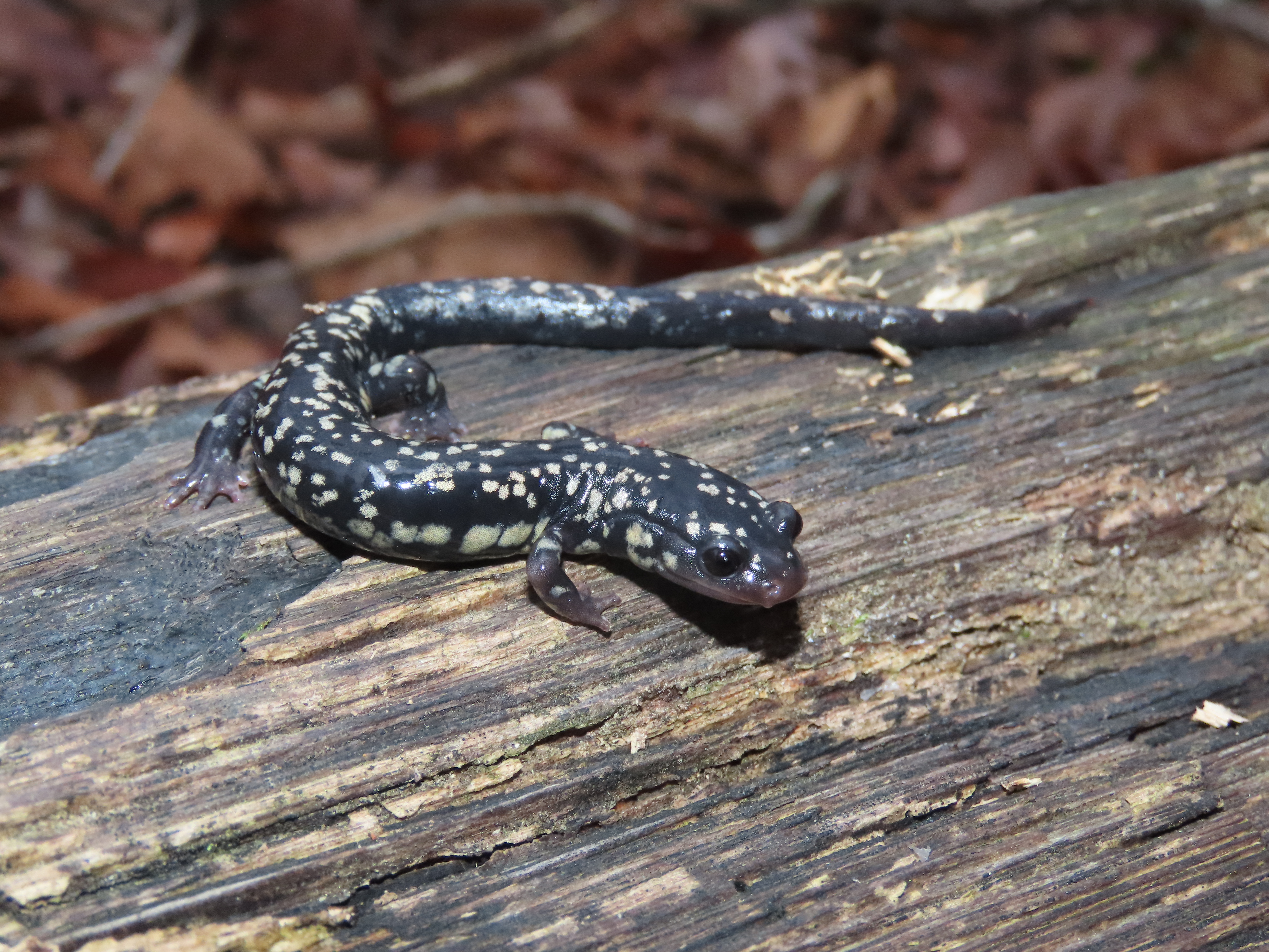 Best Time and Place to Observe: Louisiana Slimy Salamanders records are sparse in Louisiana, and few are ever found at any one time, but look for them in cooler months under logs or other cover on slopes of shaded mature forests, particularly those adjacent to spring-fed upland streams.