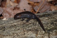 Adult Description: Medium-sized, robust salamander (maximum 4.8”) with broad head and short tail compared to most salamanders. Variable in coloration, from brown, dark gray, to nearly black with lighter blue-gray or silver flecks, most dense on sides, but on back and tail as well. Tail is laterally compressed, often lighter than surrounding color on top edge, and granulose. Usually 10 costal grooves, but sometimes 11. Belly is blue gray with many small blue-gray or silver flecks.