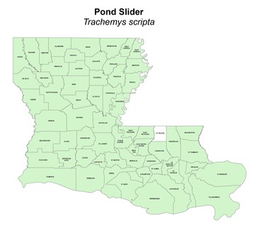 Subspecies: Only the Red-eared Slider, Trachemys scripta elegans, occurs within Louisiana.