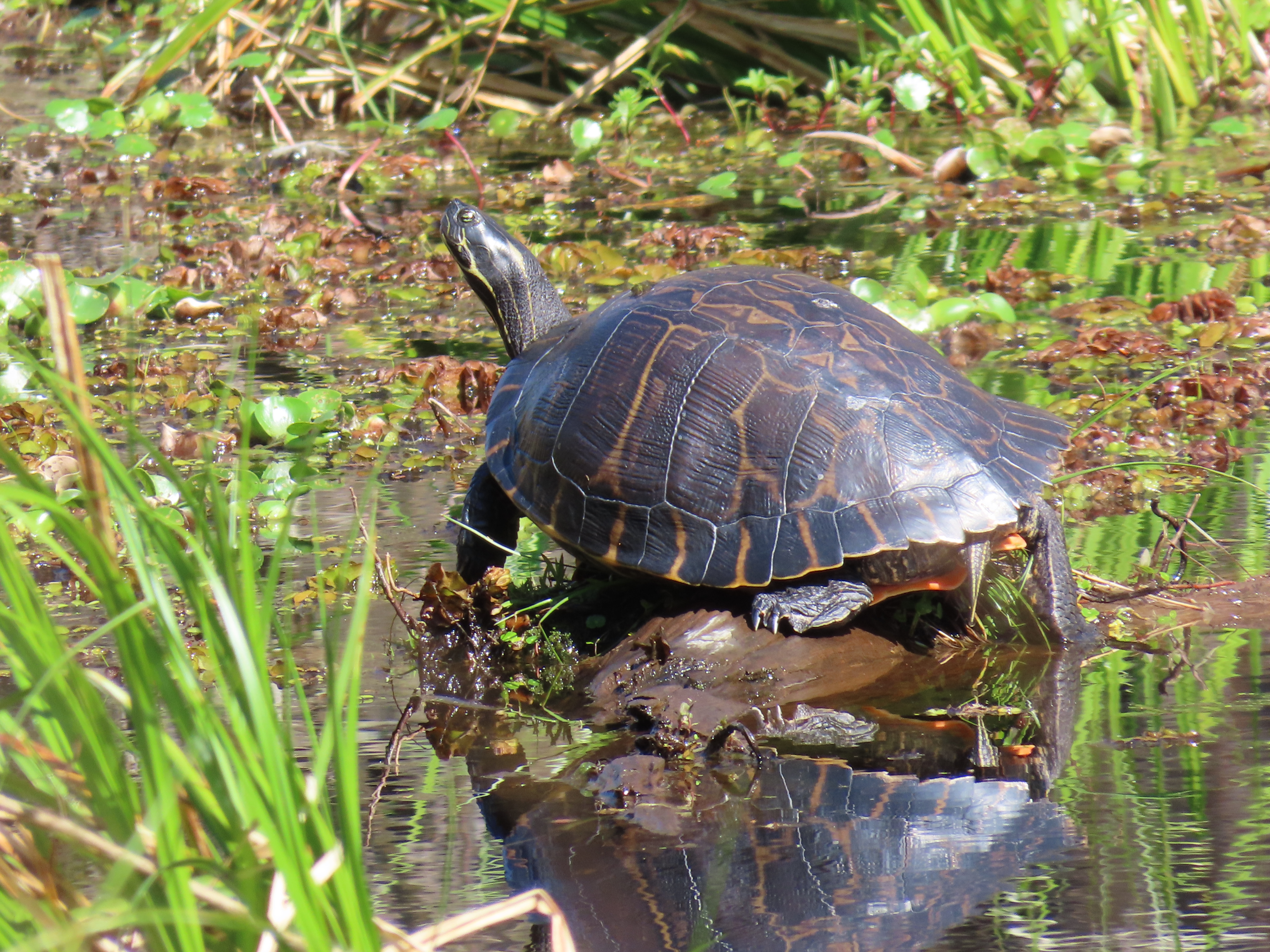 Best Time and Place to Observe: These large turtles are most easily observed basking on logs in rivers and larger bodies of water in the late mornings of spring and summer.