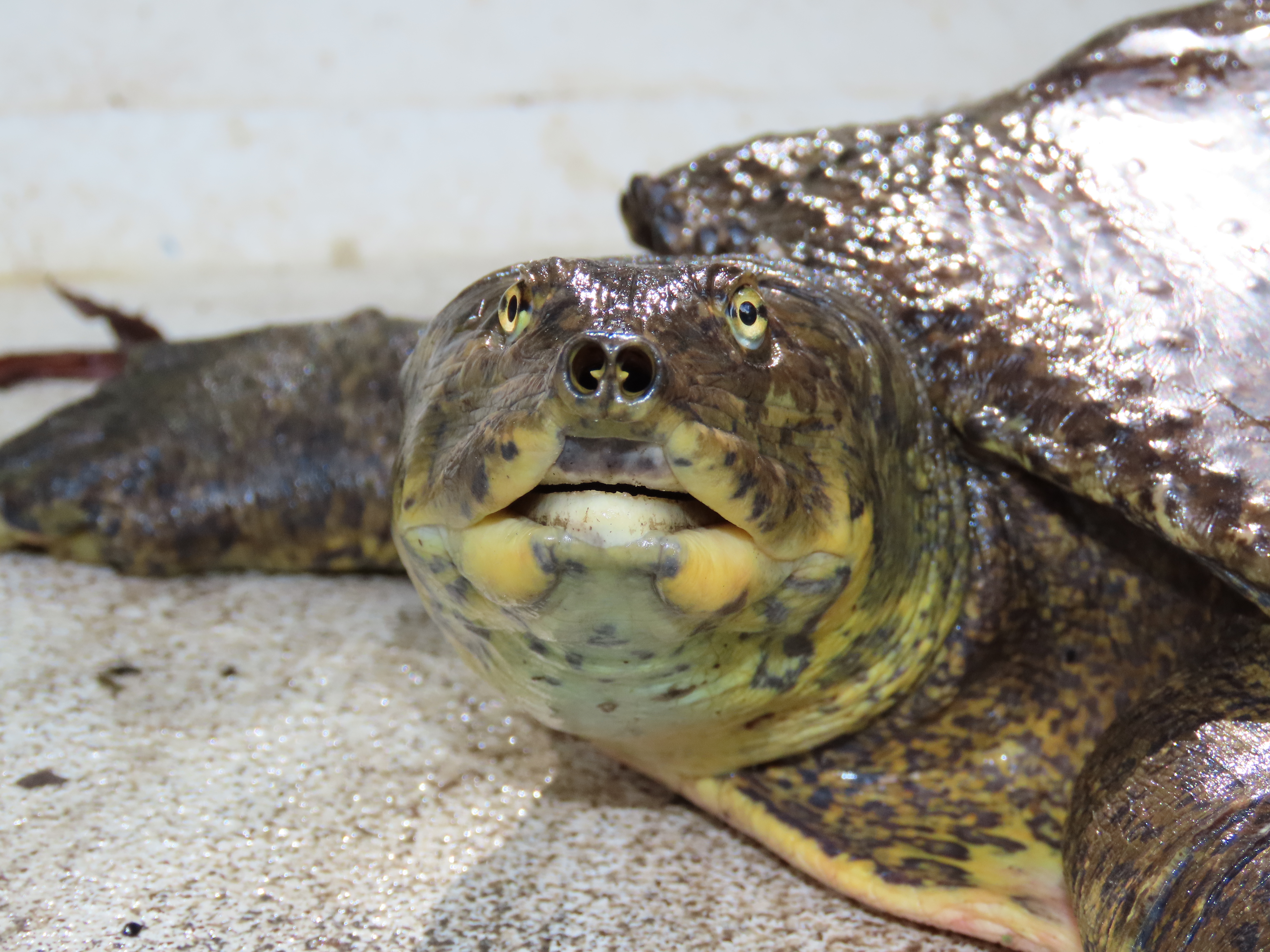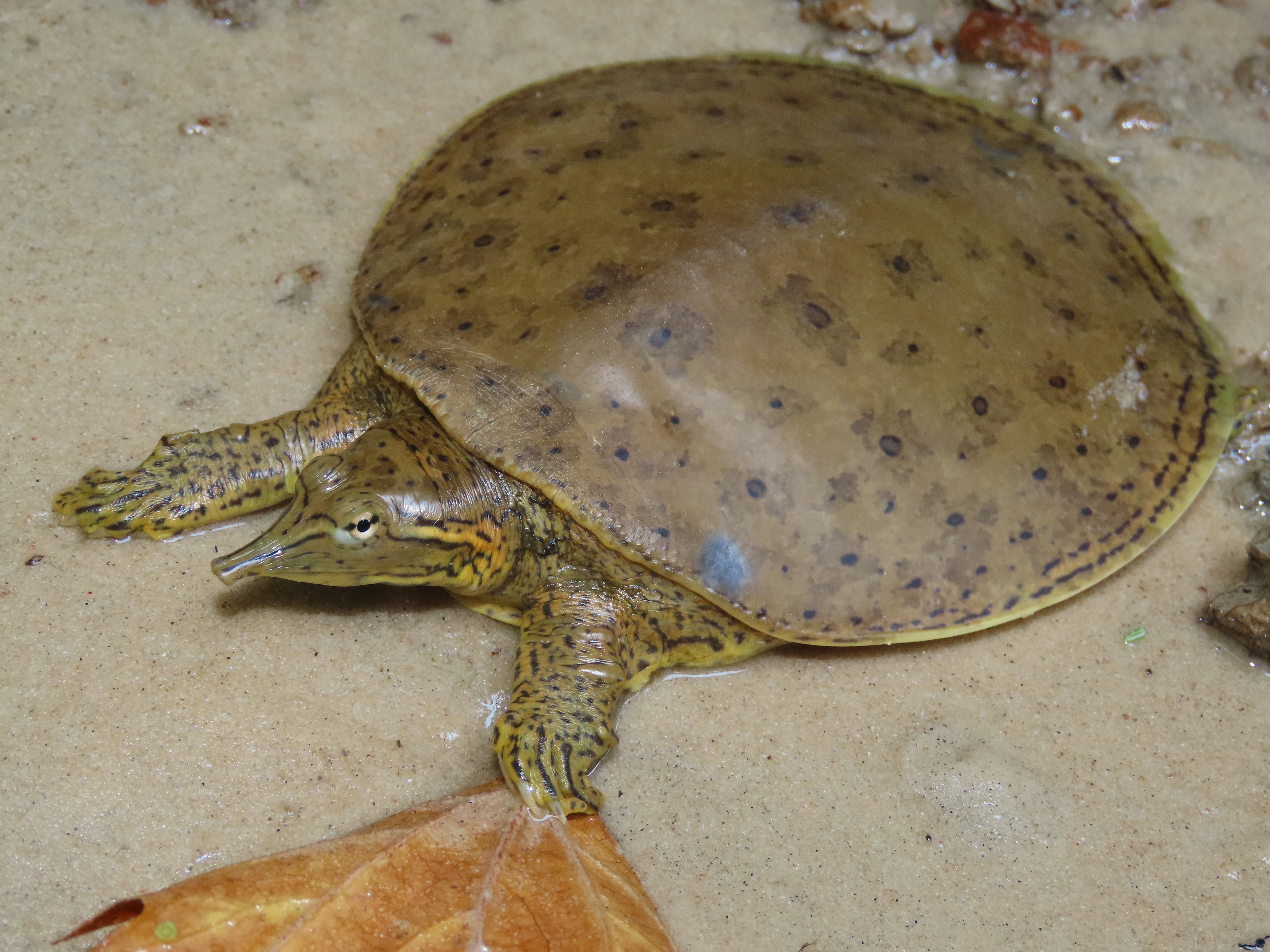 Louisiana Conservation Status: Spiny Softshells are a restricted species in Louisiana, where, with a proper license, they may be taken, but take and possession is limited to two Spiny Softshells, and no more than 10 restricted turtles (maximum of two per species, except Western Alligator Snapping Turtles which is one) are allowed in possession.